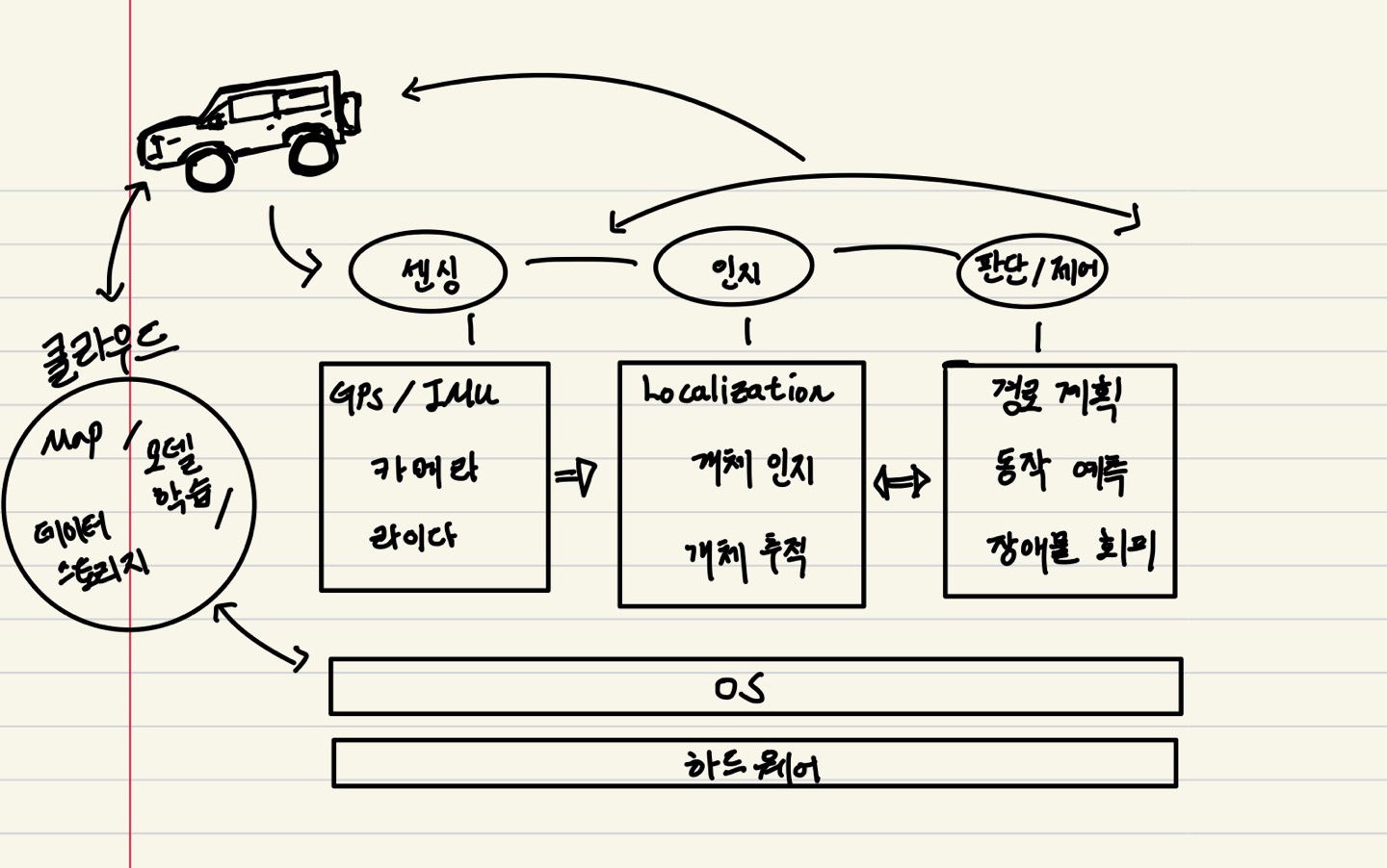 목차 반응형 자율주행의 기술은 하나의 기술로 이루어진 것이 아닌, 여러 가지 서브 시스템들이 복잡하게 연계되어 구성된다. 크게는 세가지로 나뉘는데, 센싱, 인지, 의사결정을 처리하는 알고리즘 기술 OS와 하드웨어 플랫폼을 제어하는 클라이언트 시스템 HD지도와 딥 러닝 모델 트레이닝, 시뮬레이션, 데이터 스토리지 등을 제공하는 클라우드 플랫폼 이렇게 구성된다. 자율주행 사이클 시스템 공유하기 게시글 관리 dev J 목차 목차 닫기