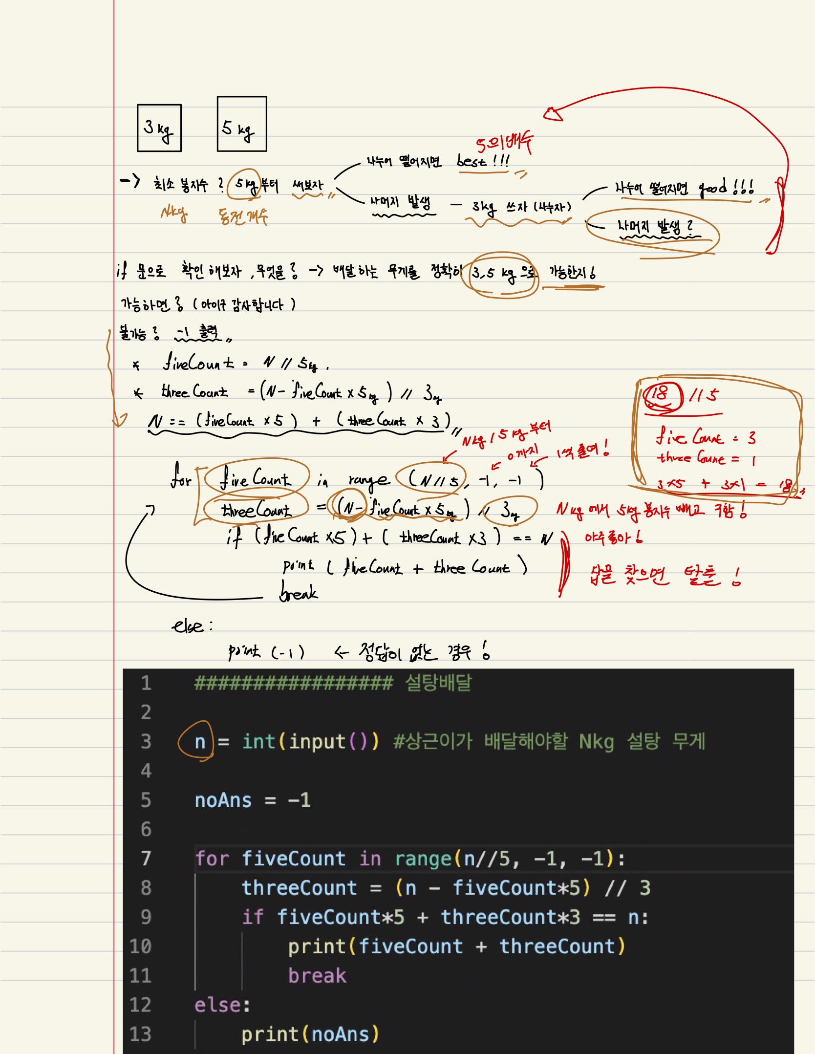 if fiveCount*5 + threeCount*3 == n: