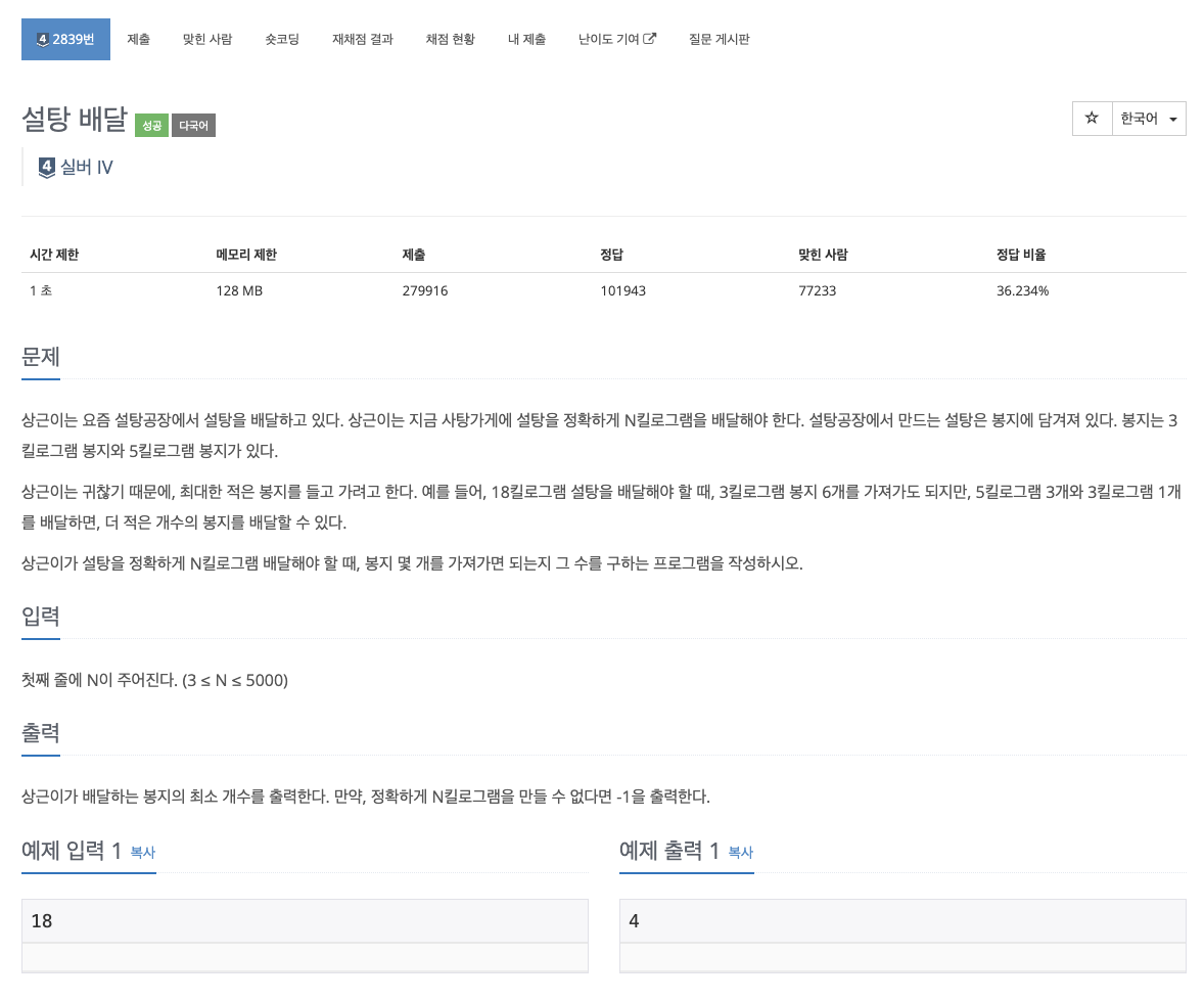 2839번: 설탕 배달