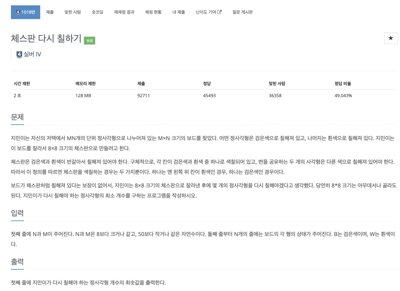 1018번: 체스판 다시 칠하기