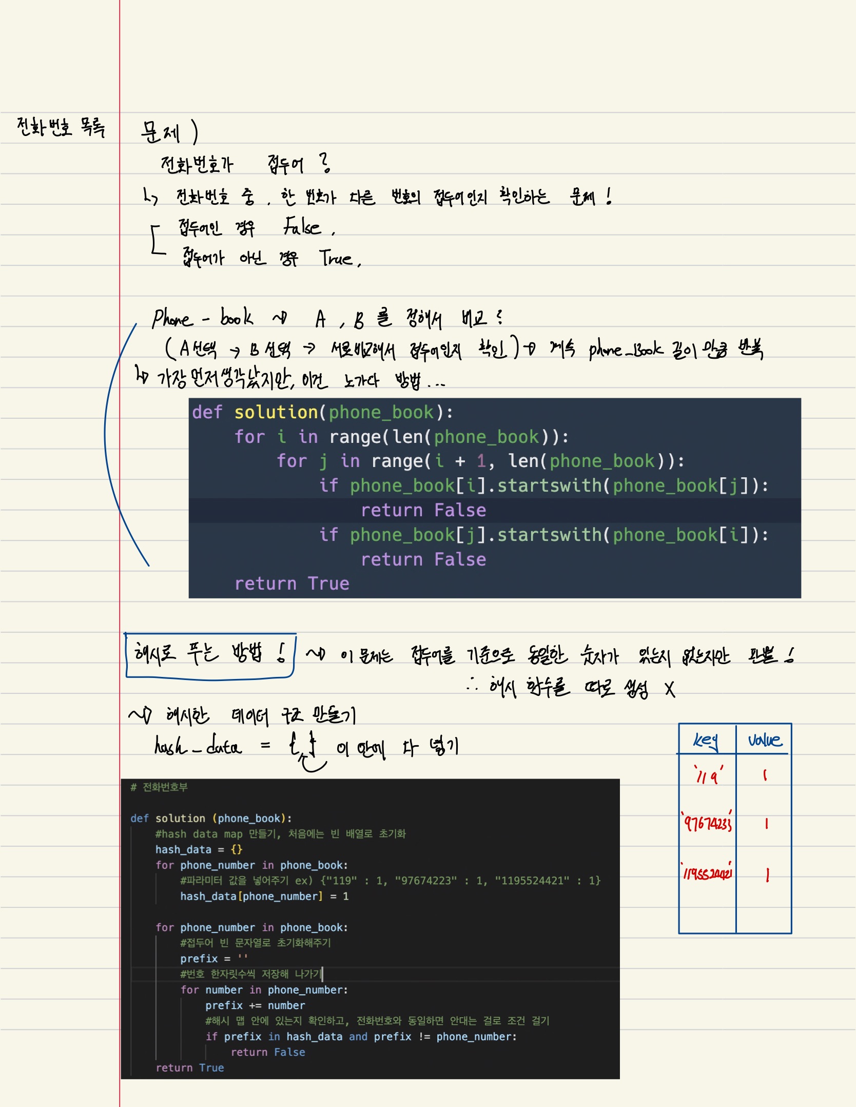 phone_book의 길이는 1 이상 1,000,000 이하입니다. 각 전화번호의 길이는 1 이상 20 이하입니다. 같은 전화번호가 중복해서 들어있지 않습니다.