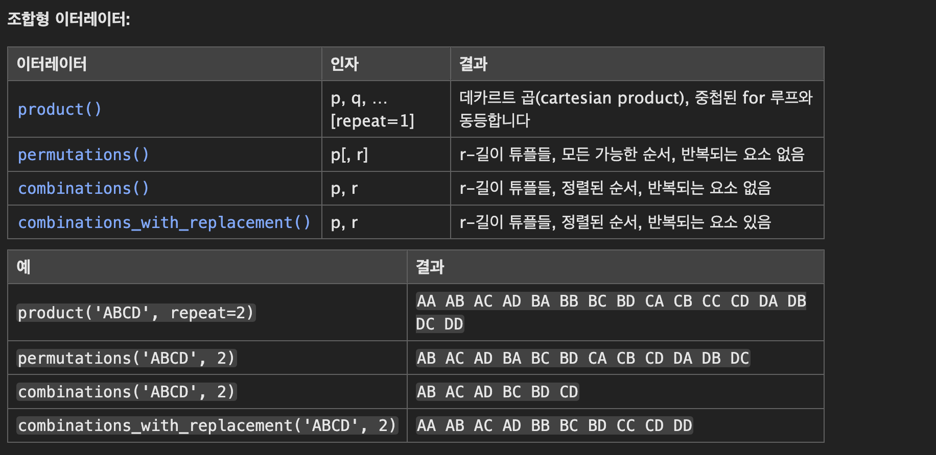 https://docs.python.org/ko/3/library/itertools.html