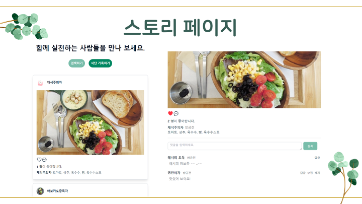 - 식단 업로드 기능: 비건, 베지테리언 식단 업로드 기능