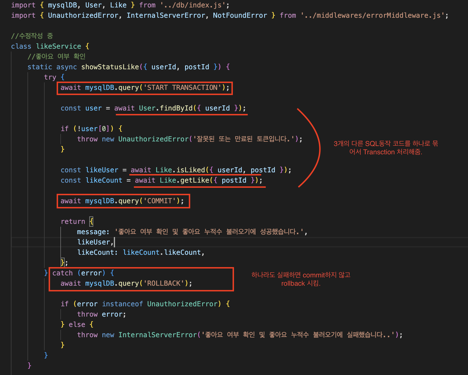 mysql에서는 transaction defalut 값으로 autocommit이 지정돼 있다. 하지만 우리의 서비스에서는 수동으로 transaction을 관리하는 코드를 작성해 주었다.