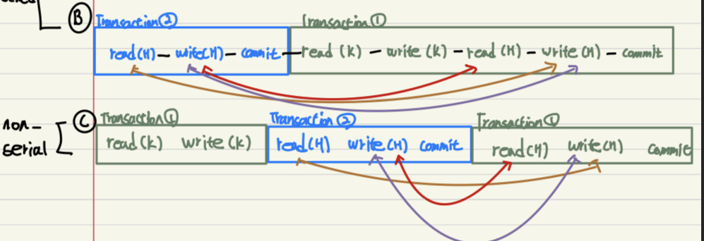위의 예시에서는 C schedule이 conflict 하다고 할 수 있다.