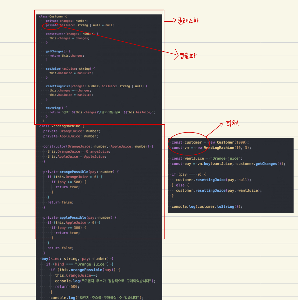 바탕화면 폴더를 정리하지 않으면, 어떤 파일을 찾을 때 하나하나 제목을 보면서 찾는 수고스러움을 느낄 것이다. 이것의 해결법은, 동일한 주제별로 카테고리화시켜 폴더를 생성하고 그 안에, 비슷한 성질의 파일들을 묶어서 보관하고, 폴더제목을 성향의 특징에 맞게 보자마자 "아! 이런 거 있는 폴더구나"할 수 있도록 만들면 될 것이다. 이 작업을 프로그래밍에서 똑같이 해주면 객체를 독립적으로 생성해 주고 추상화 작업을 마쳤다고 할 수 있다. 또한 파일의 내용을 쉽게 변경하면 안 되는 것들에 비번을 걸어 놓듯이, 프로그래밍에서도 객체 안의 데이터에 접근해서 쉽게 변형할 수 없도록 보호한다라는 개념에서 캡슐화를 해주면 된다.