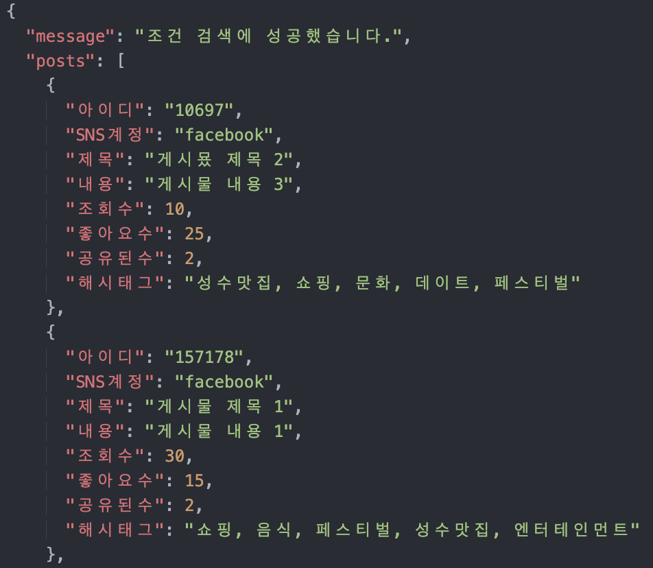 위의 내용에서 확인 할 수 있듯이, 쿼리 파라미터로 들어오는 조건에 따라 쿼리의 결과를 동적으로 필터링하여 데이터를 처리하여야 했다.