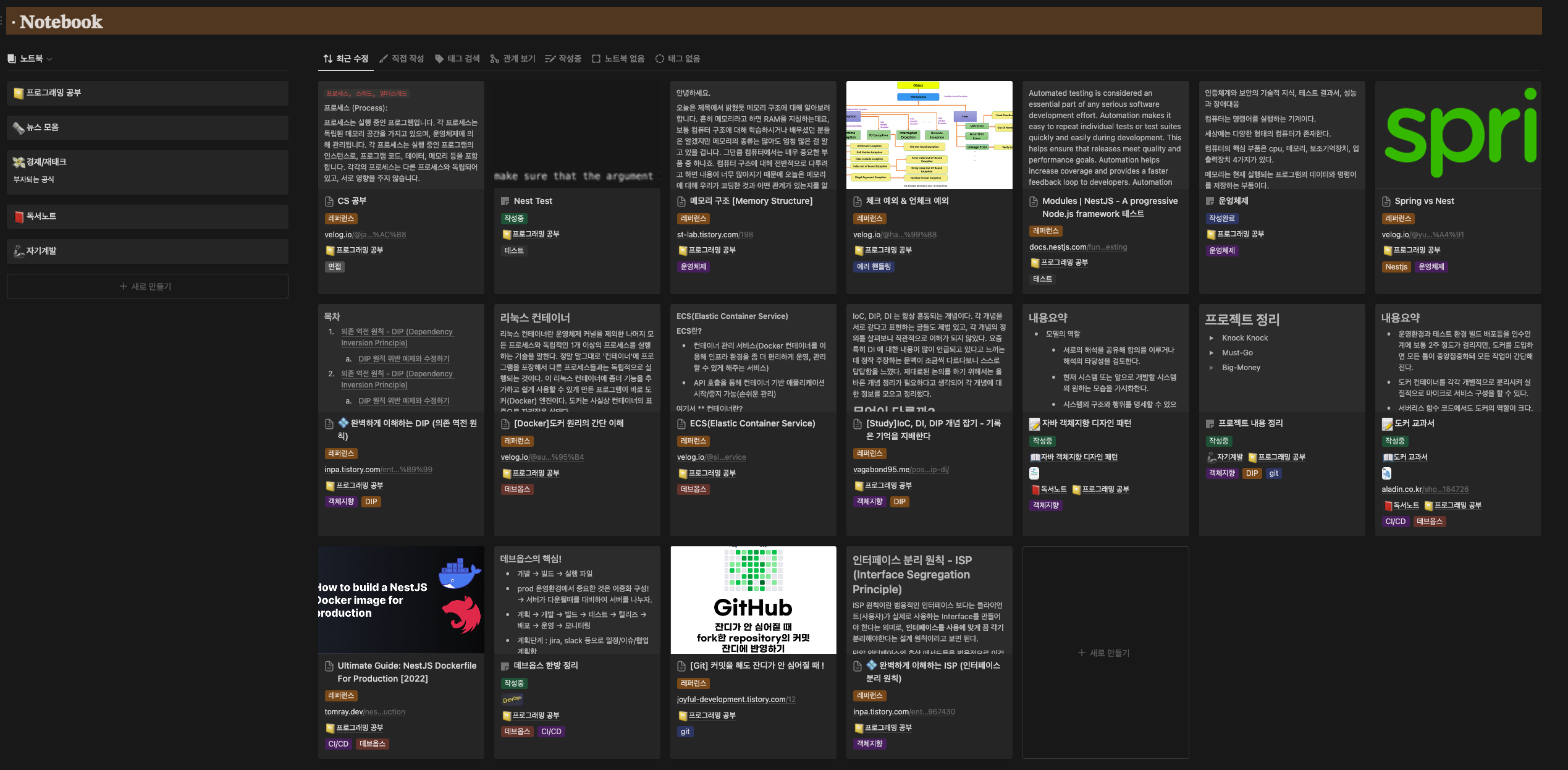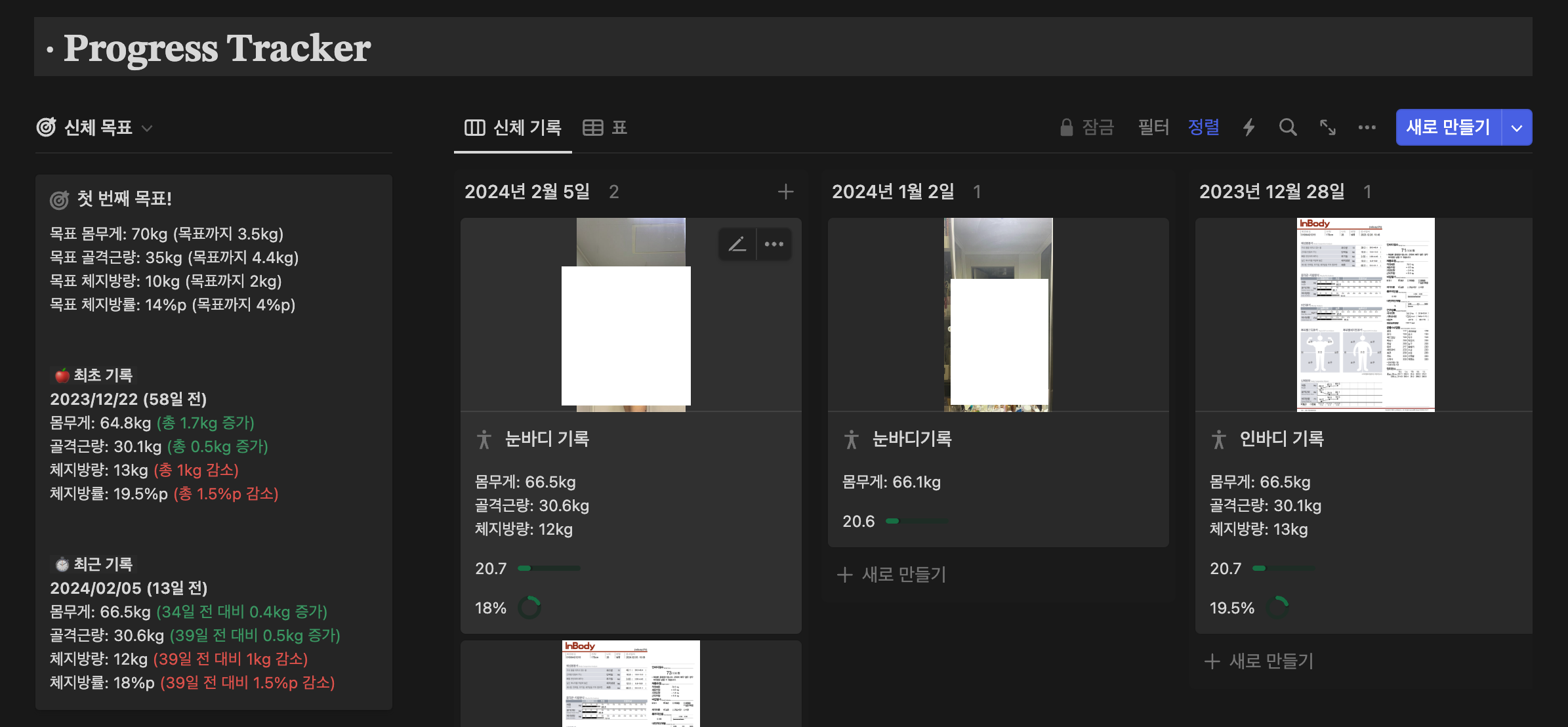 - 2024년의 첫 키워드는 "기록의 누적을 통한 성장하는 삶"이다. 이전에도 바인더와 다이어리를 활용해 기록하는 습관을 가지고 있었으나, 기록들이 유기적으로 연결되지 않고 파편화된 상태였다. 이에 대한 문제점을 인식하고, 노션을 통해 기록들이 서로 연동되도록 변경했다. 이를 통해 실시간으로 기록을 저장하고 수정하는 경험을 했다. 이 변화는 내 인생에서 가장 잘한 일 중 하나일 것이라고 생각한다.